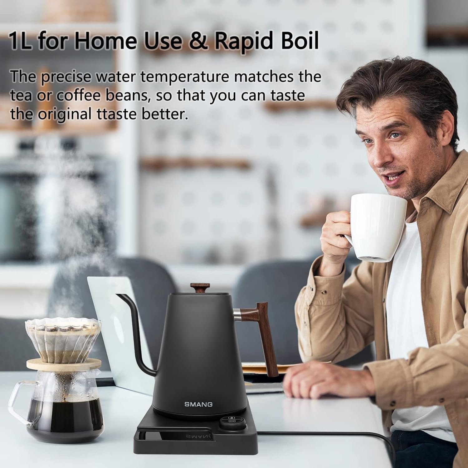 Generous Capacity: With a 1L capacity, this electric kettle can accommodate multiple servings, making it perfect for households or small gatherings.